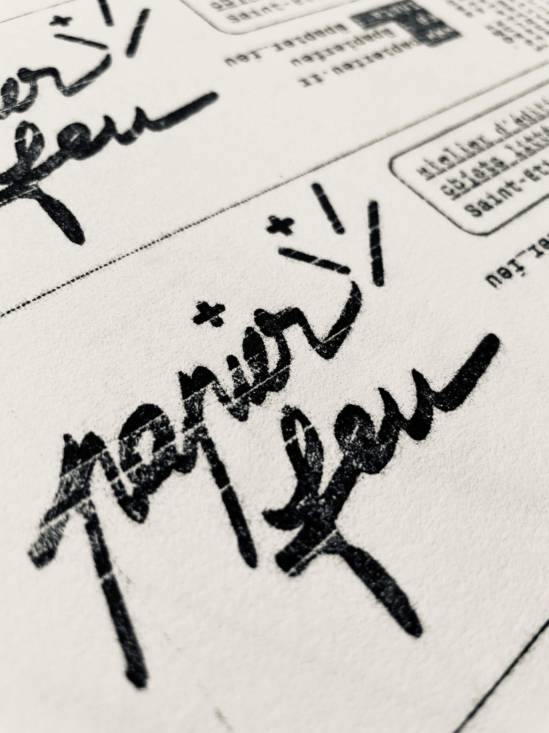 Chaque ouvrage est conçu et imprimé à l’atelier, de l’idée à l’impression. Nous travaillons sur rotatives (Gestetner / Rex Rotary), les doigts pleins d’encre, attentifs aux rouages. Nous privilégions les techniques low-tech, les tirages limités, l’assemblage manuel.